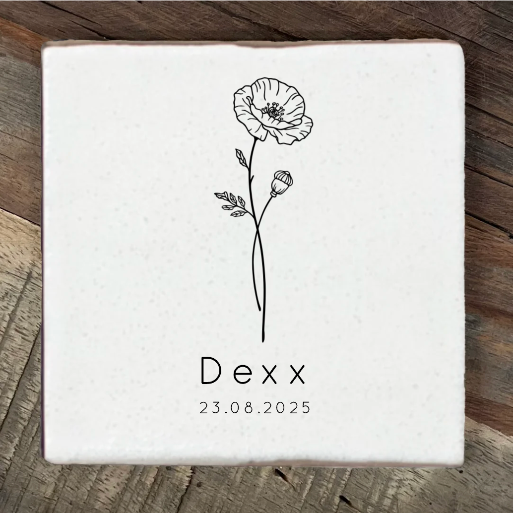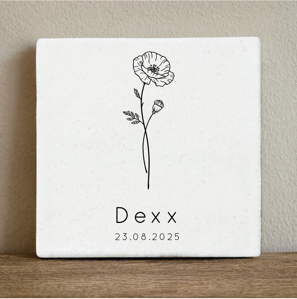 Label2X Tegeltje geboortebloem Augustus Tegeltje geboortebloem Augustus woonaccessoires homedecoratie