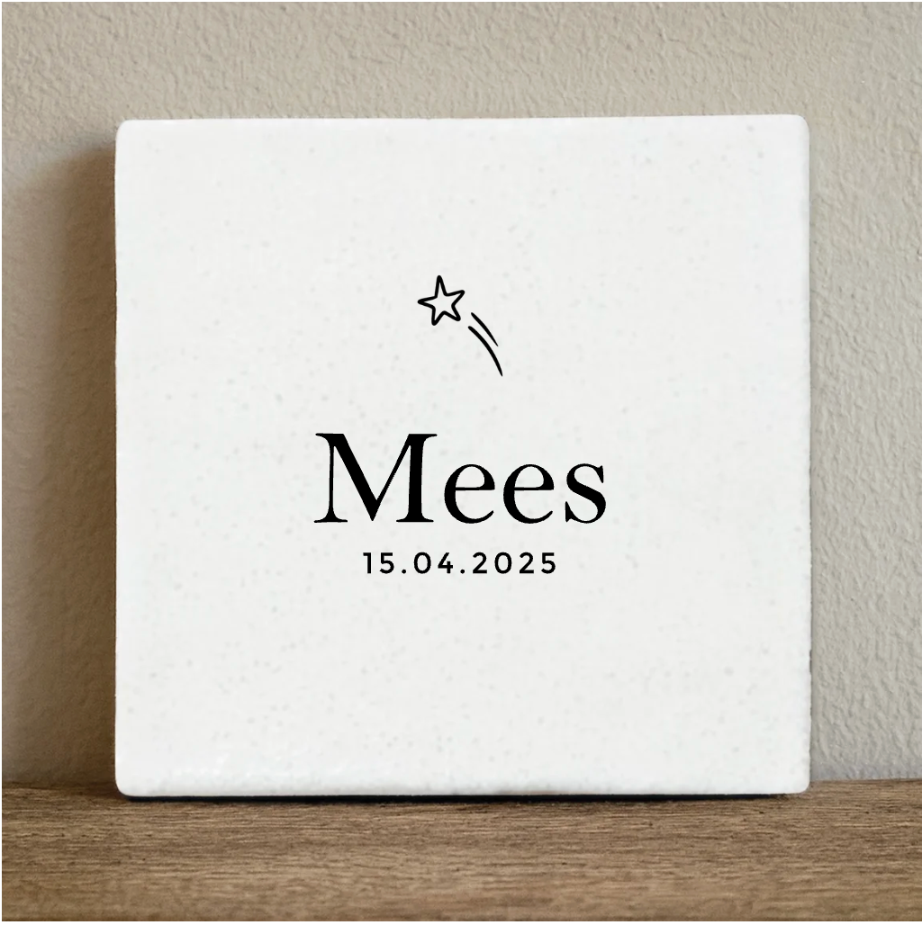 Label2X Geboortetegeltje met naam en datum sterretje Geboortetegeltje met naam en datum sterretje woonaccessoires homedecoratie