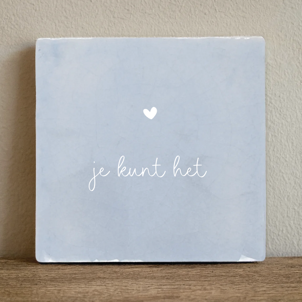 Combineer dit mooie tegeltje met een tegelhouder om het een mooie plek te geven of de LUXE tegelhouder waar je naast het tegeltje ook een waxinelichtje kunt plaatsen.