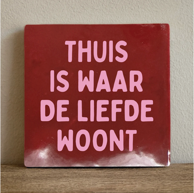 Combineer dit mooie tegeltje met een tegelhouder om het een mooie plek te geven of de LUXE tegelhouder waar je naast het tegeltje ook een waxinelichtje kunt plaatsen.
