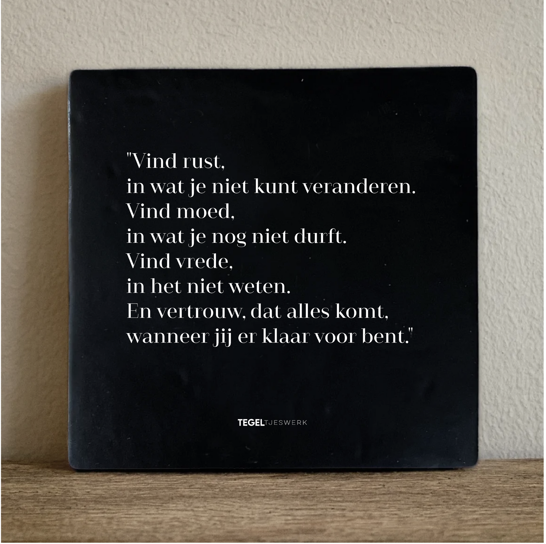 Verkrijgbaar in tijdloos zwart of klassiek wit, waardoor het tegeltje moeiteloos past in zowel moderne als warme interieurs. Perfect als stijlvol woonaccessoire, subtiele eyecatcher aan de muur of als uniek cadeau met een persoonlijk karakter.