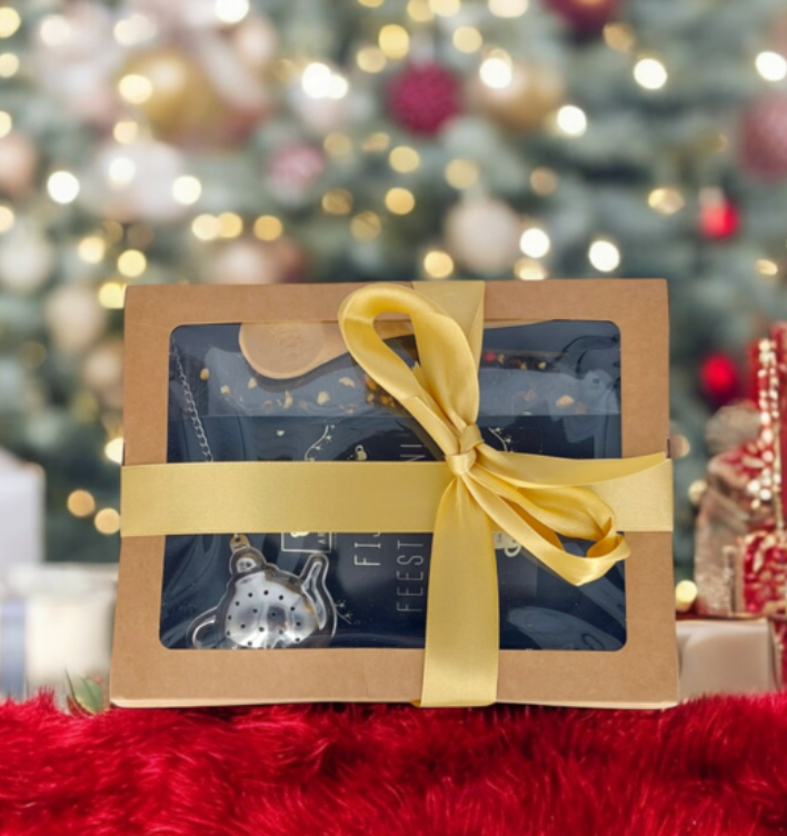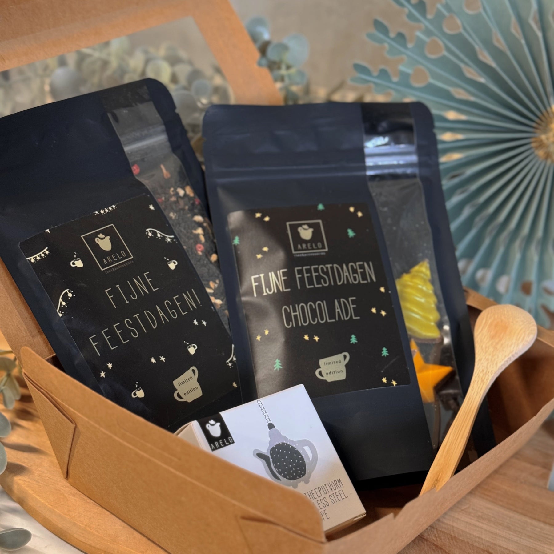 Cadeaupakket thee en chocolade, fijne feestdagen